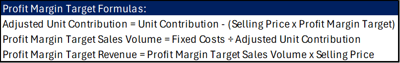 Breakeven and Profit Point analysis are just a couple of the key tools enabled through the use of CVP analysis. Our next content will focus on how to use sensitivity analysis and margin of safety calculations in order to determine how far off we can be on our assumptions without going backwards on profits or falling below our breakeven point. This helps quantify any potential risks associated with the options you are pursuing to increase performance. |